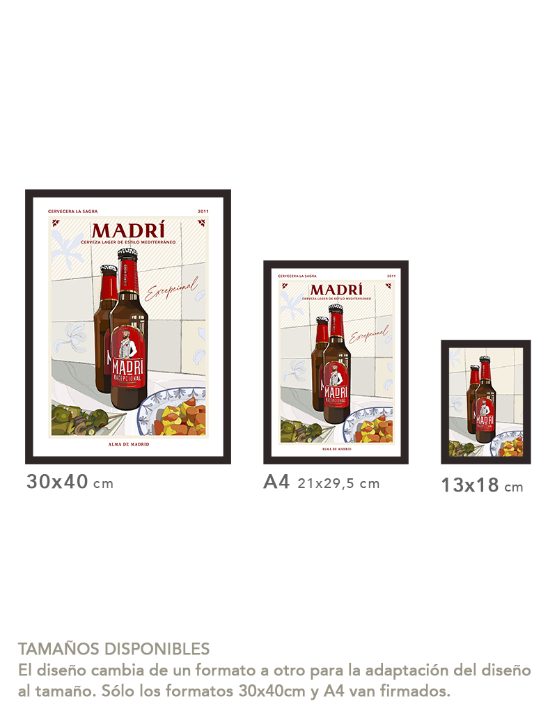 El diseño (en los formatos A4 y 30x40cm) incorpora en texto el nombre de la cerveza, la cervecera y su año de creación.