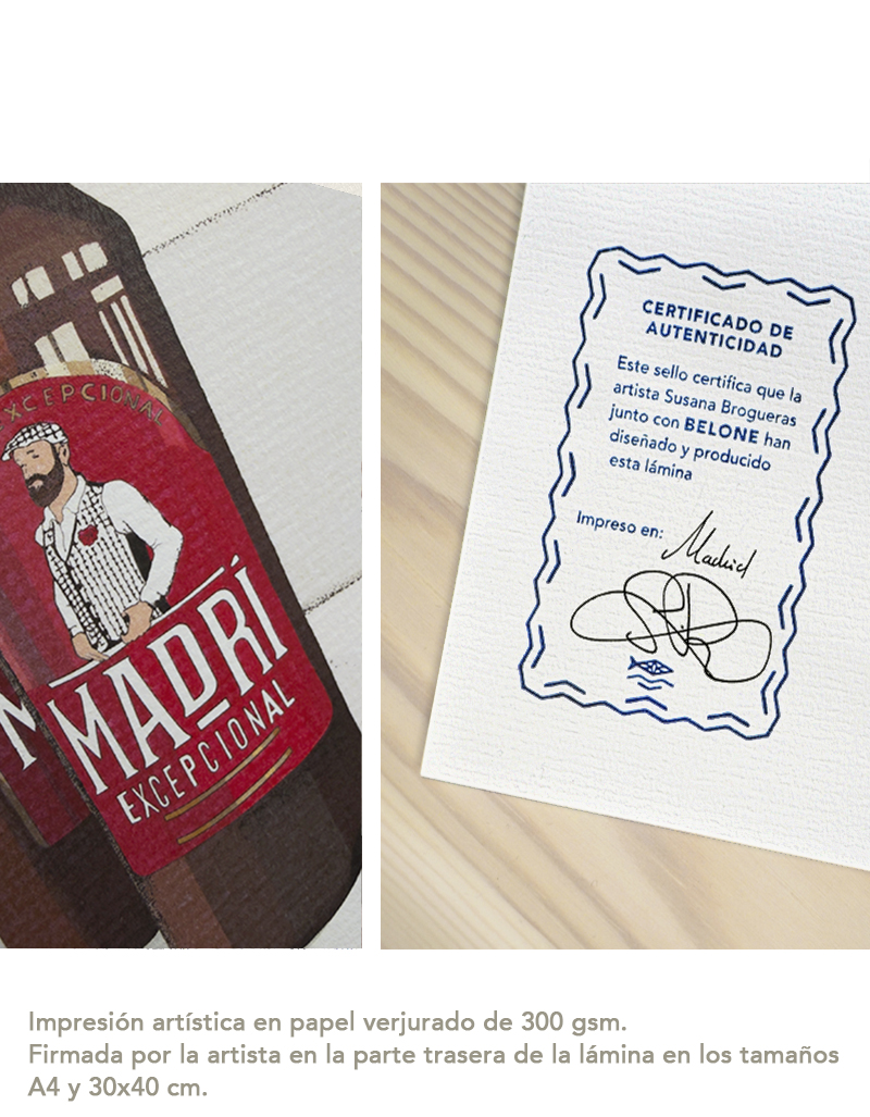 Esta lámina combina la ilustración manual a tinta de Susana Brogueras con el posterior trabajo gráfico de Catia Santos, dando como resultado un diseño original al 100% de Belone.