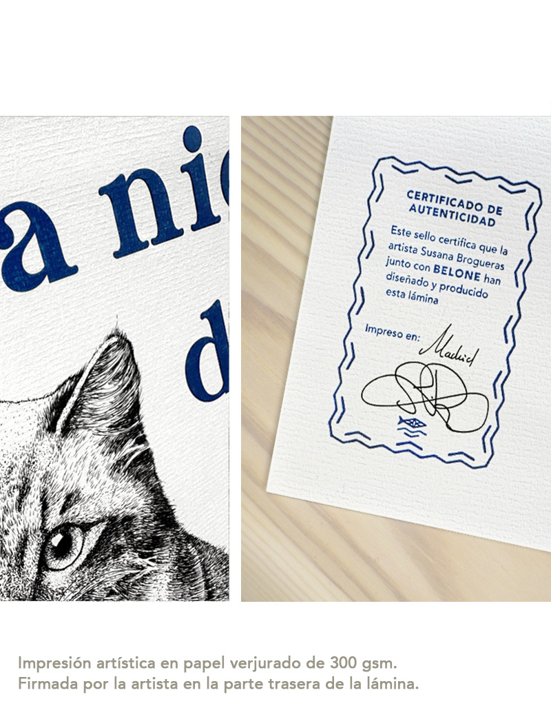 Se trata de una impresión artística realizada sobre un bonito papel verjurado de 300 g con textura y un ligero tono cálido que la hacen especial.